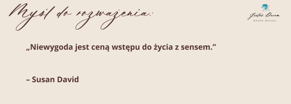 Jeśli stoisz na życiowym rozdrożu i zastanawiasz się „Co dalej?”, zapraszam Cię do pobrania D.A.R.mowego e-booka „Odważ się na Siebie”, który znajdziesz na mojej stronie: https://magdamoskal.com