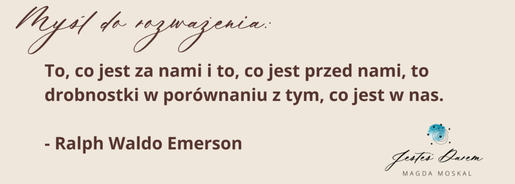 Jeśli stoisz na życiowym rozdrożu i zastanawiasz się co dalej, a chcesz zbudować życie oparte na swoim Darze, zapraszam Cię do pobrania D.A.R.mowego e-booka „5 kroków do rozpoznania Twojego D.A.R.u”. Znajdziesz go na stronie: https://magdamoskal.com/5-krokow/.