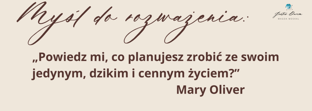 Jeśli stoisz na życiowym rozdrożu, zastanawiasz się co dalej i chcesz zbudować życie oparte na swoim Darze, zapraszam Cię do pobrania D.A.R.mowego e-booka „5 kroków do rozpoznania Twojego D.A.R.u”. Znajdziesz go na stronie: https://magdamoskal.com/5-krokow/.